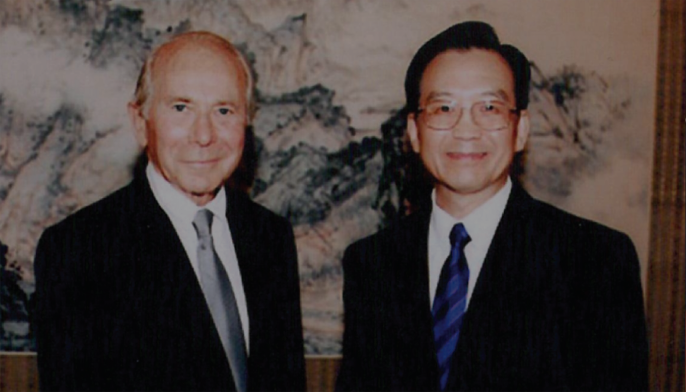 Maurice R. Greenberg com Zhu Ronji, Prefeito de Shanghai de 1988 a 1991 e Premier da República Popular da China de 1998 a 2003.