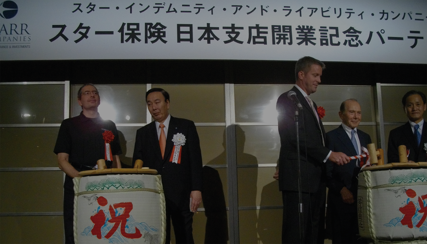 Cerimônia oficial de inauguração da filial da Starr no Japão.